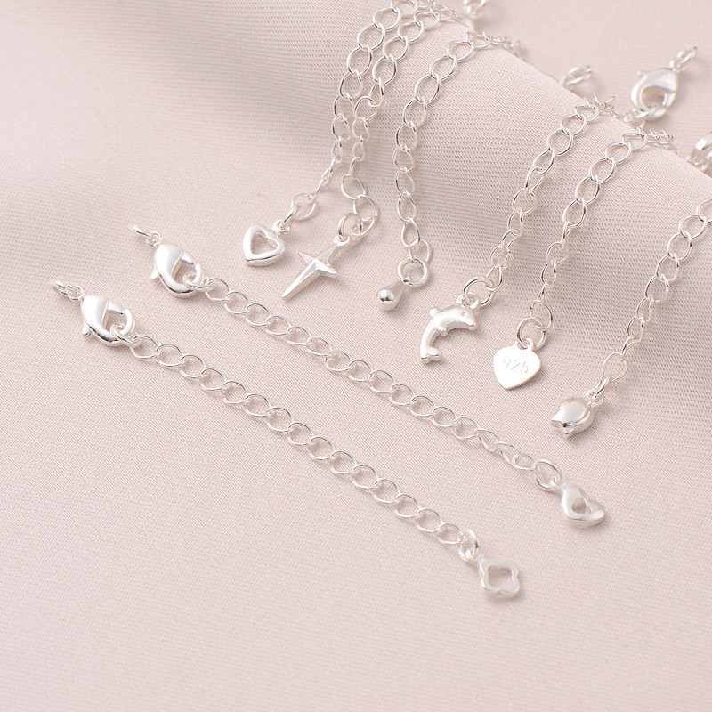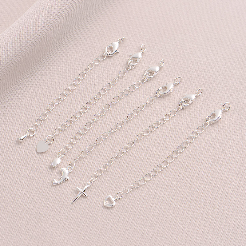 📚 保色铜镀银带龙虾扣延长链手工diy项链水滴尾链手链可调节加长链
