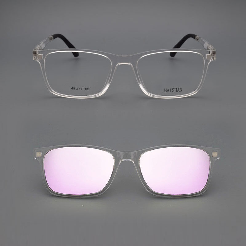 📚 眼镜框 小脸眼镜架窄脸带磁铁偏光墨镜夹片透明白蓝色弹簧腿