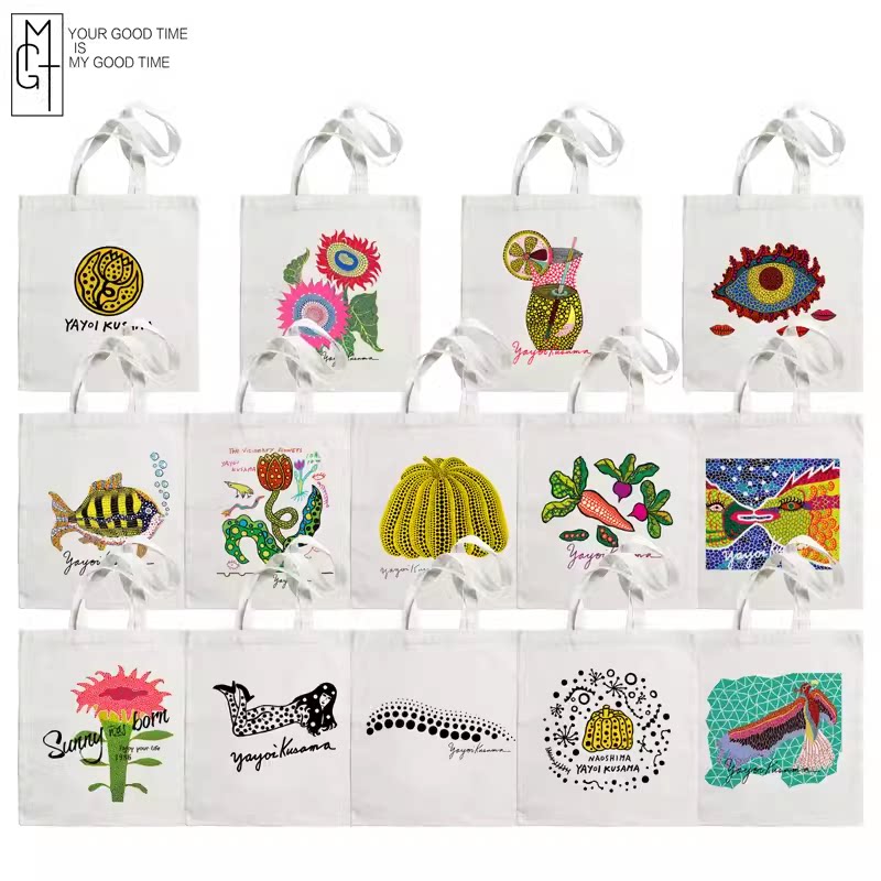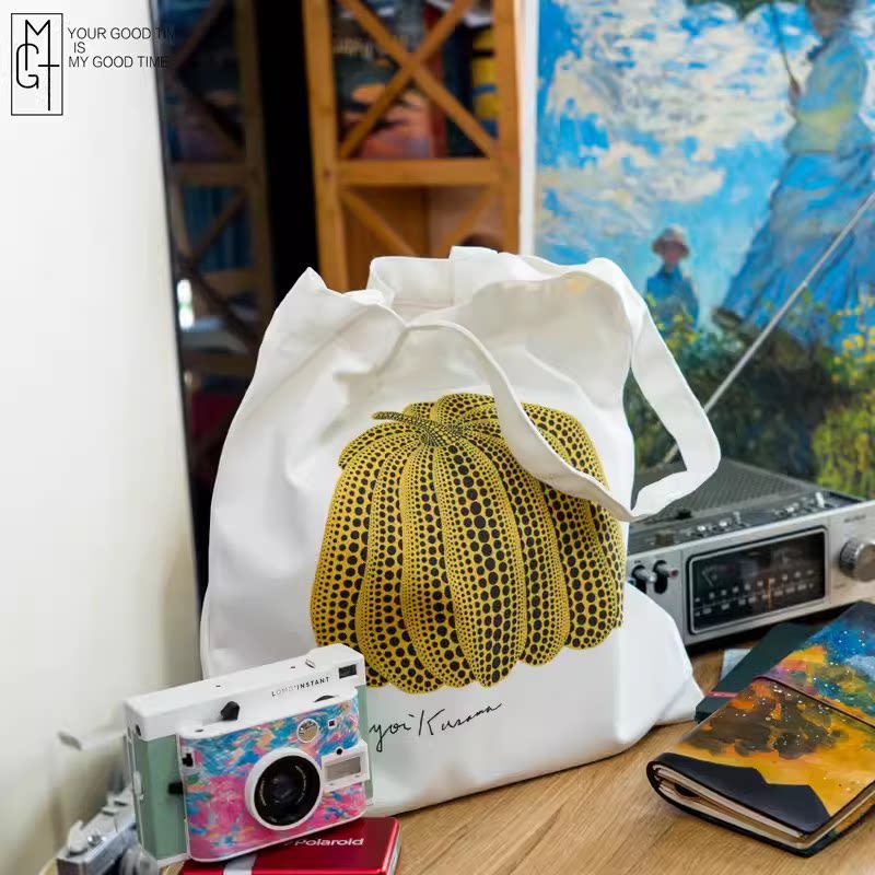 📚 自制日本草间弥生南瓜同款帆布包女单肩购物袋简约大容量小众手提