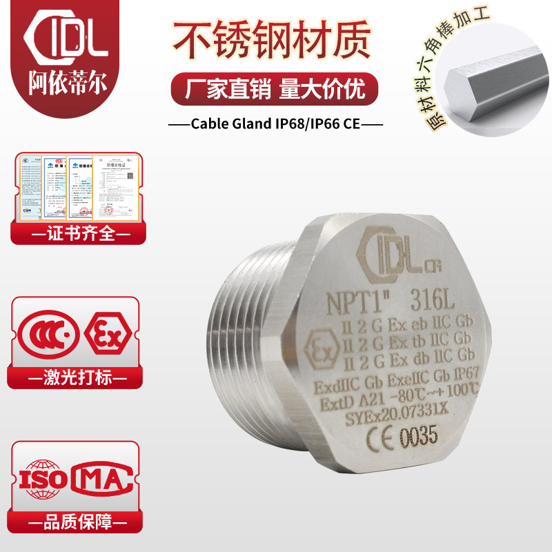 📚 电工丝堵 防爆堵头 316不锈钢盲塞 黄铜镀镍旋入闷盖 空实心 加长