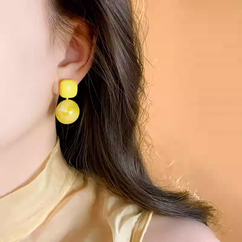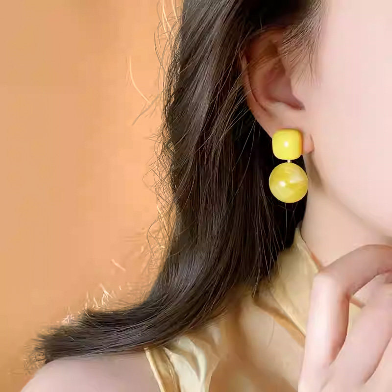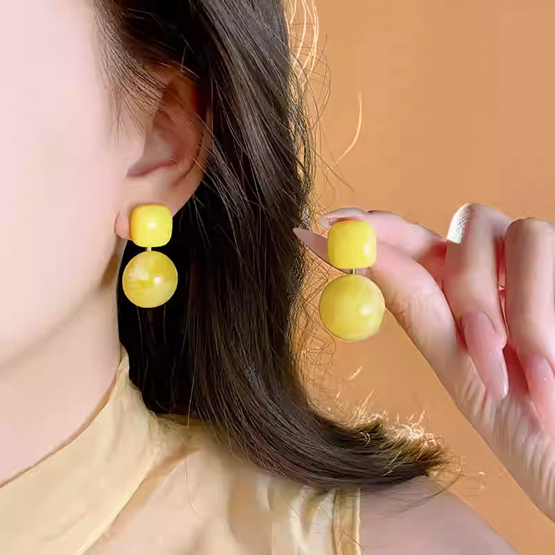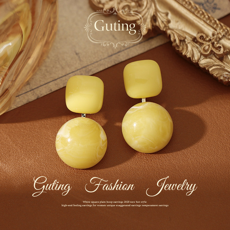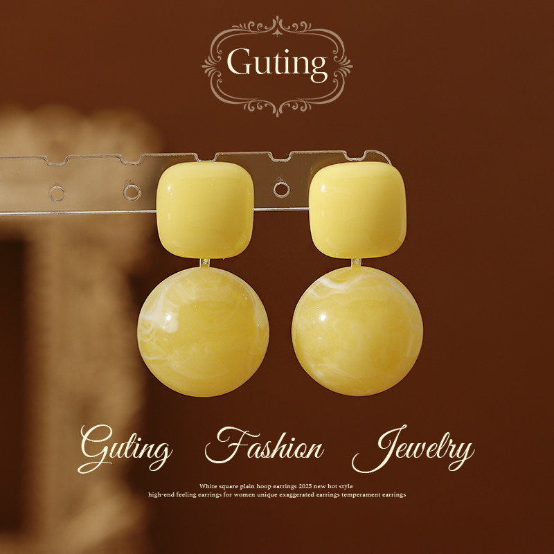 📚 古婷奶油黄色复古几何耳环女2026新款爆款高级感耳钉独特漂亮耳饰