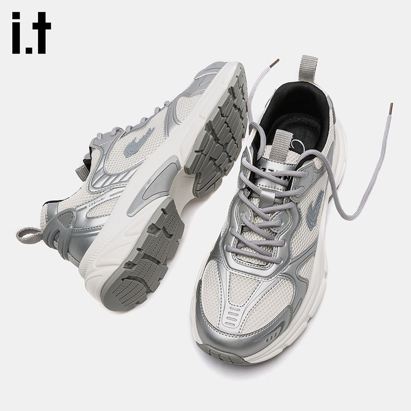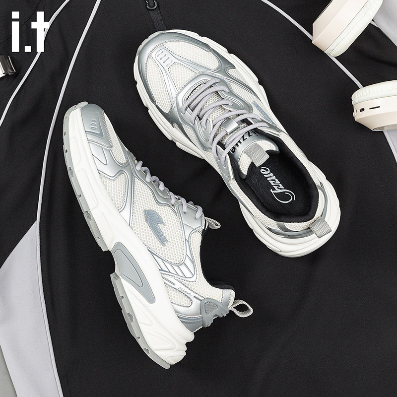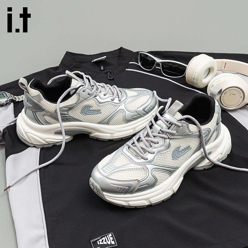 📚 it izzue潮流厚底增高老爹鞋潮男士白色秋季复古户外登山运动鞋