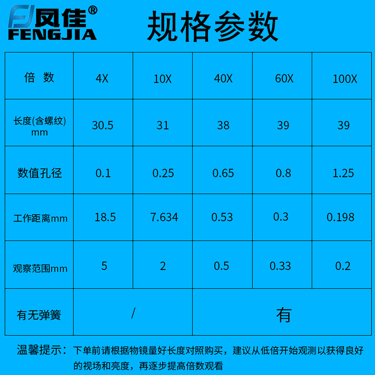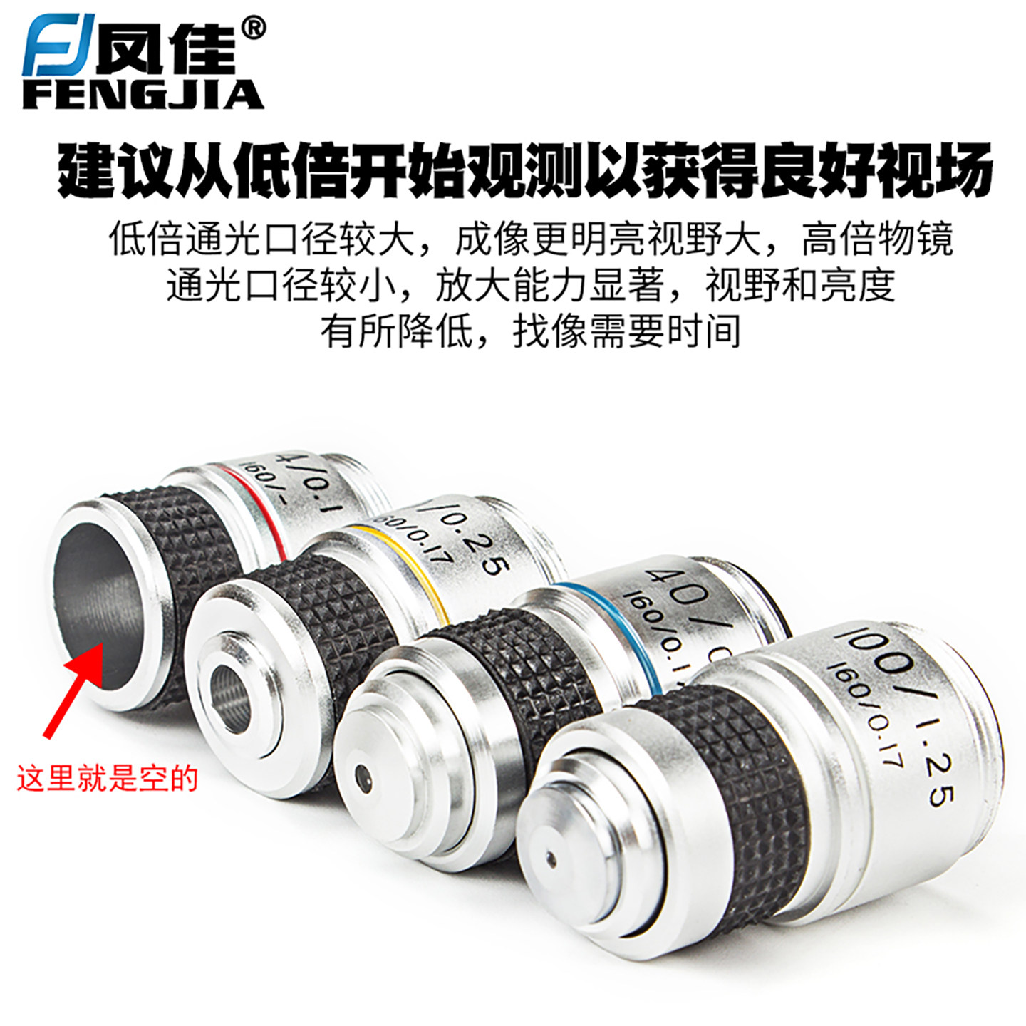 📚 凤佳正品显微镜185型消色差铝质材料4倍10倍40倍100倍物镜