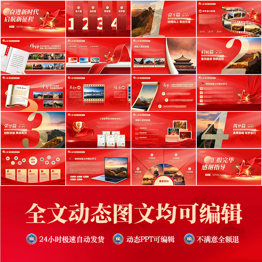 📚 红色PPT模板高级动态大气教师课件团支部工作总结年终汇报教学