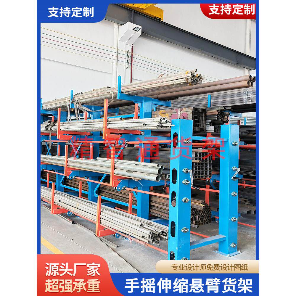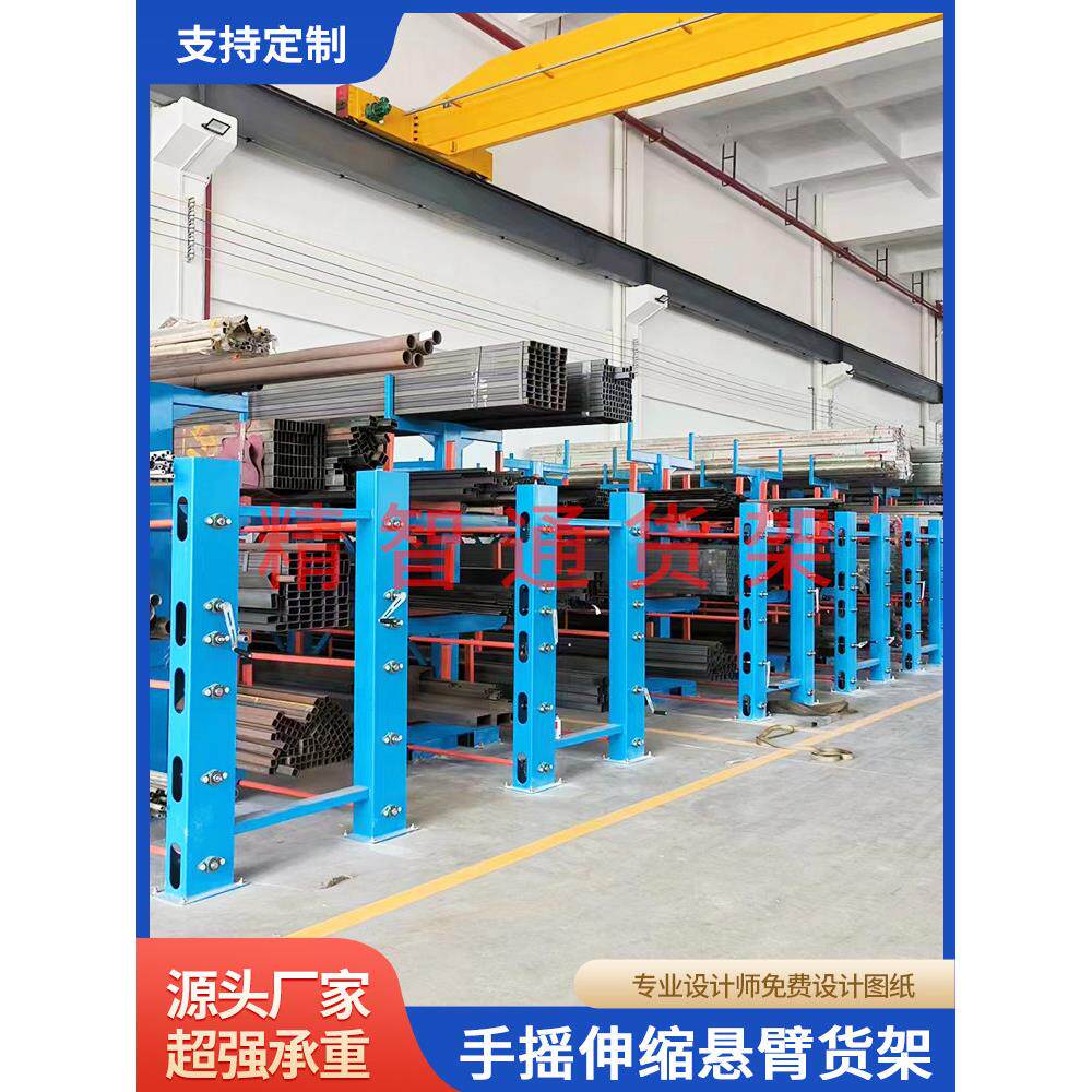 📚 伸缩悬臂货架铝型材货架仓库五金管材棒材双面重型手摇式托臂货架