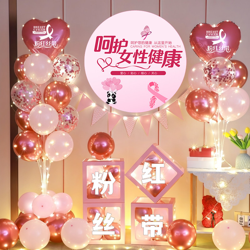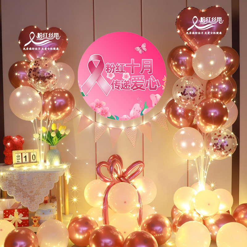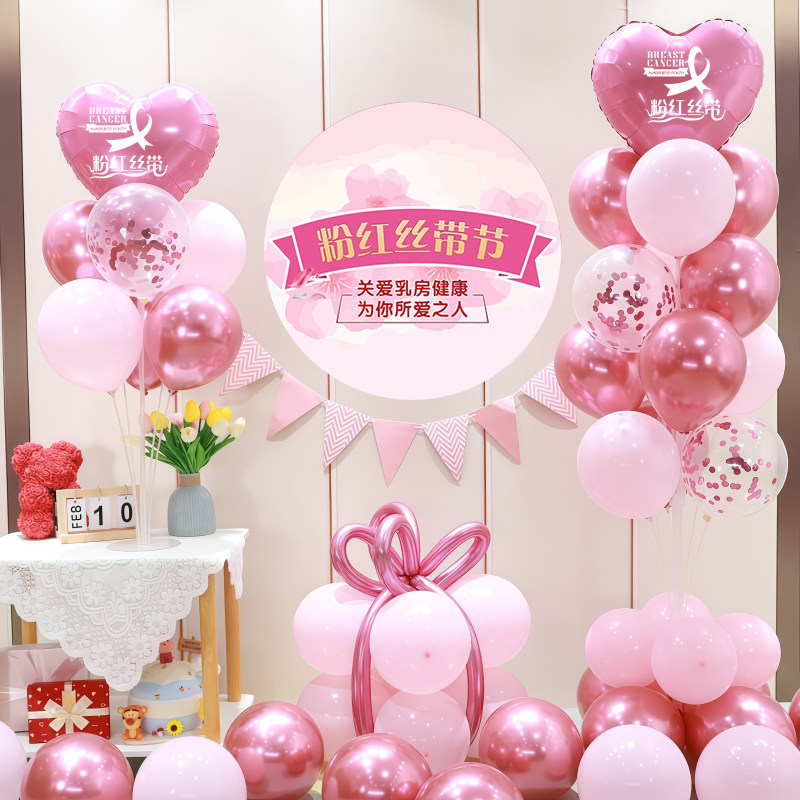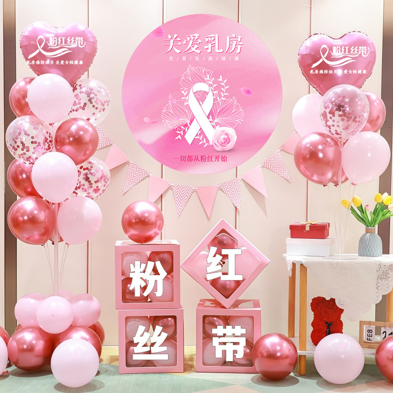 📚 十月粉红丝带节宣传月公益活动气球装饰医院活动场景布置气球海报