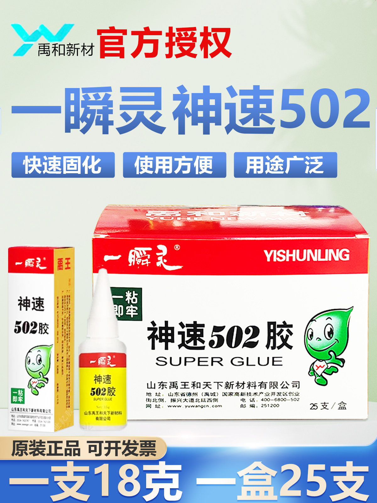 📚 禹王神速502胶水金属木材陶瓷皮革快速粘接剂强力瞬间胶18g/25支