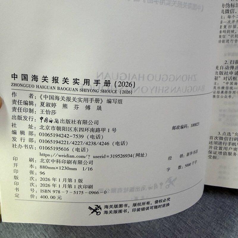 08¥ CZ193 7hJvUMBOvBF¥ https://m.tb.cn/h.7Cx92EO 2026新版中国海关报关实用手册2026年税则中英文对照版编码书报关书税则HS编码查询贸易通关增值服务企业工具书籍中国海关出版社 --------------------- 【原售价】340元 【现售价】340元。