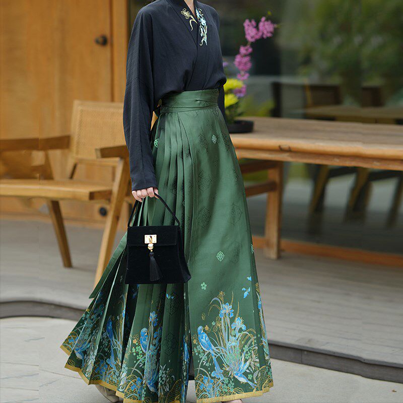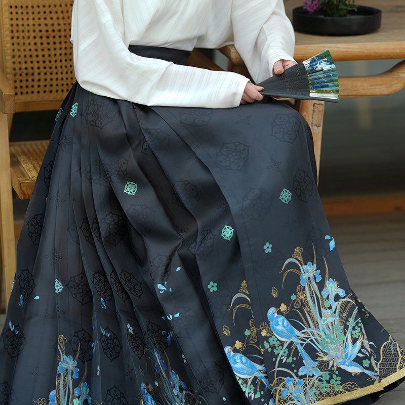 📚 无衣饮羽【翠笙】明制汉服暗纹翠鸟鸢尾仿妆花螺钿三色百搭马面裙