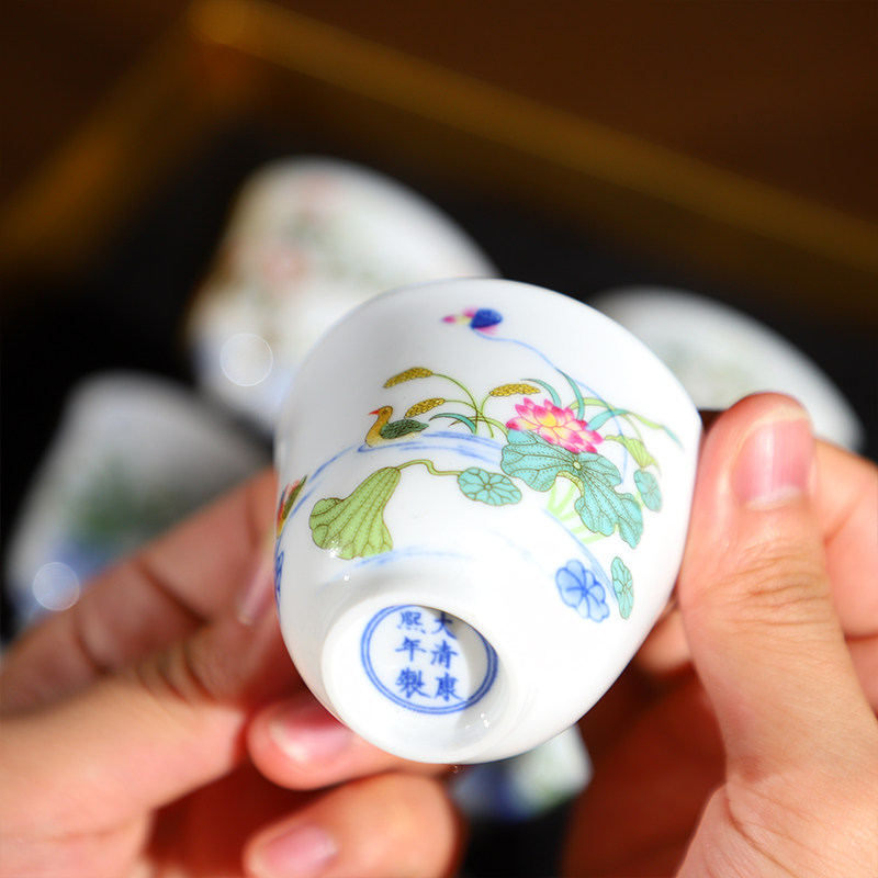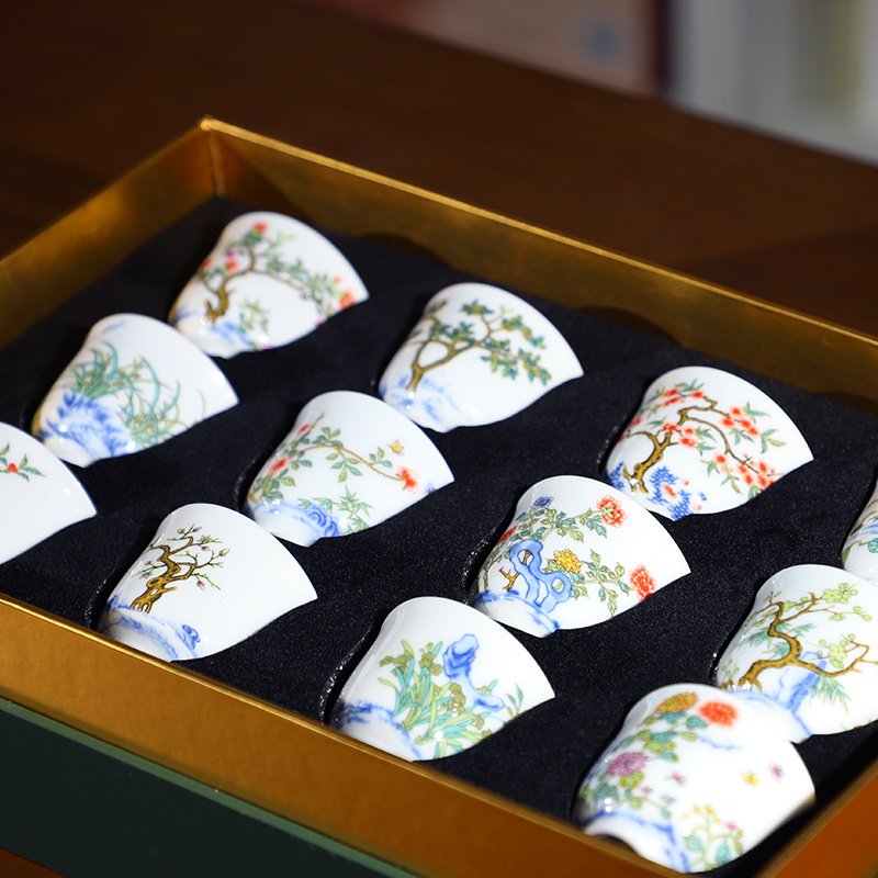 📚 康熙五彩十二花神杯功夫茶具茶杯套装水杯故宫文创杯子父亲节礼物