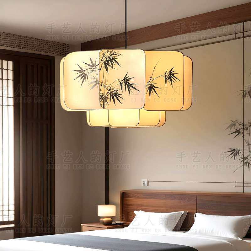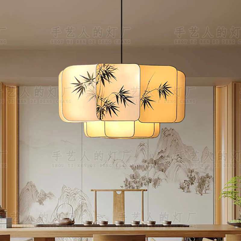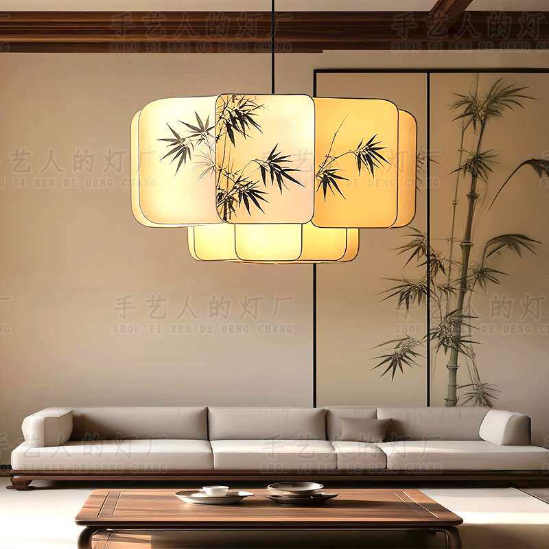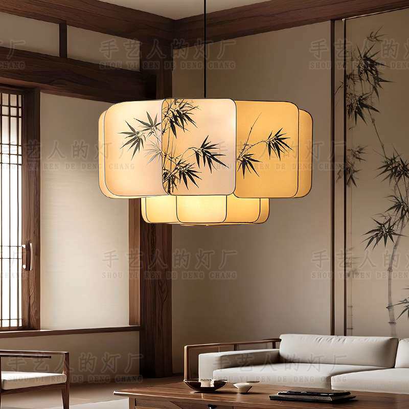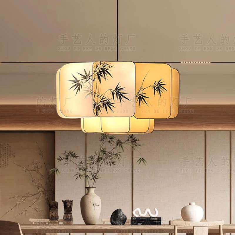 📚 宋代美学布艺竹叶水墨画文人墨客客厅灯禅意茶室书房餐厅卧室吊灯