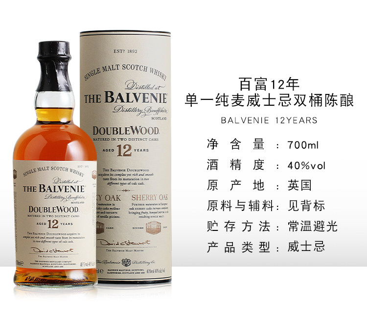 📚 百富12年双桶陈酿单一麦芽苏格兰威士忌Balvenie英国进口洋酒行货