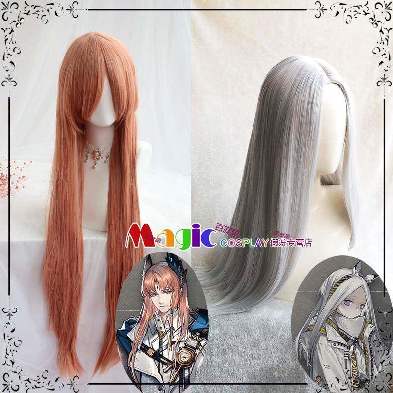 📚 明日方舟 暴雨 异客 COS假发 橙色一米长直发 银色中分长发假毛