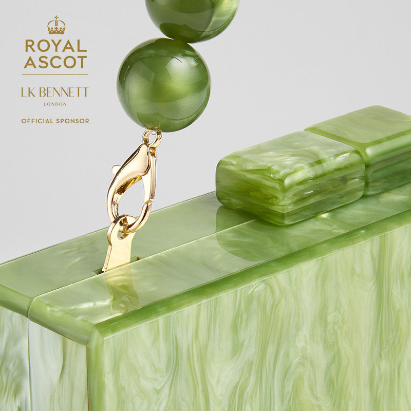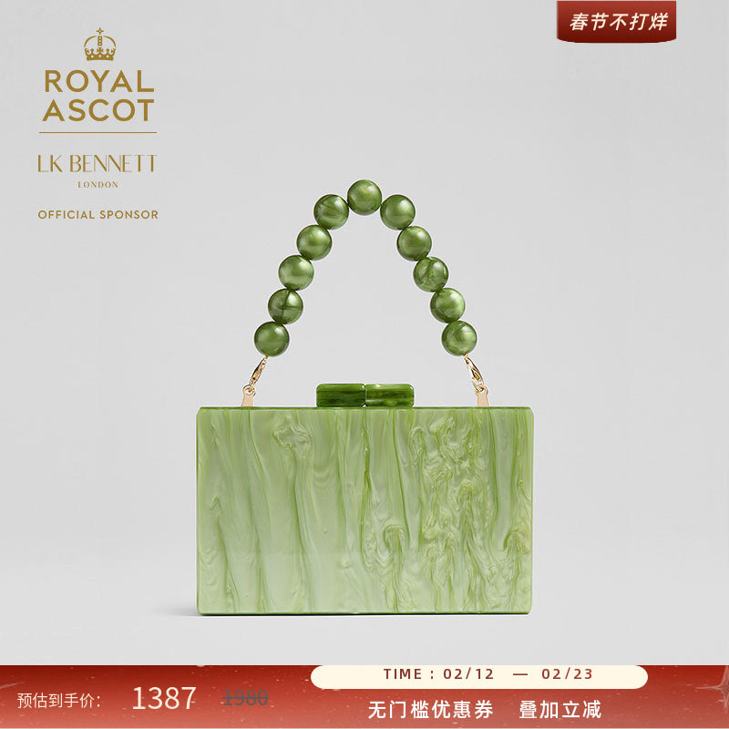 📚 LK BENNETT【皇家赛马会】绿色琥珀纹小方包女晚宴串珠手腕手提包