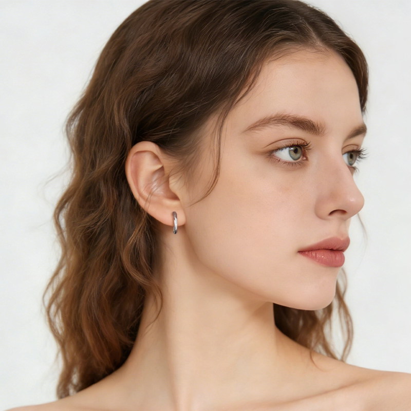 📚 S925银耳针莫比乌斯双面环耳环女秋冬轻奢手工镶嵌耳环2026款耳钉