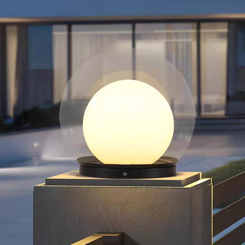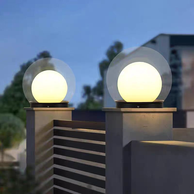 📚 太阳能月球柱头灯接电农村别墅庭院大门两侧柱子围墙圆形球灯户外