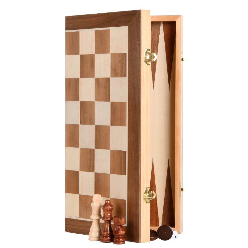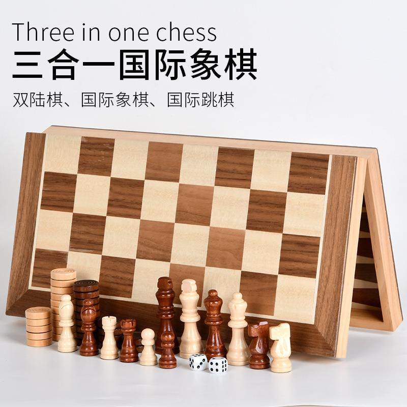 📚 智多星大号木皮拼接实木象棋跳棋双陆棋三合一对开棋盒套装象棋、