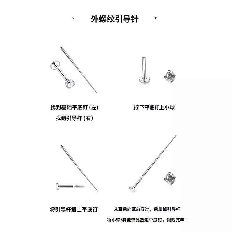 📚 钛研社|316L钛钢插入外螺纹换耳钉引导针引导杆舌钉唇钉辅助工具
