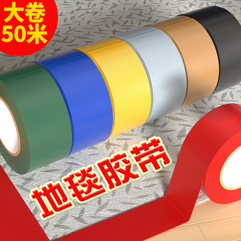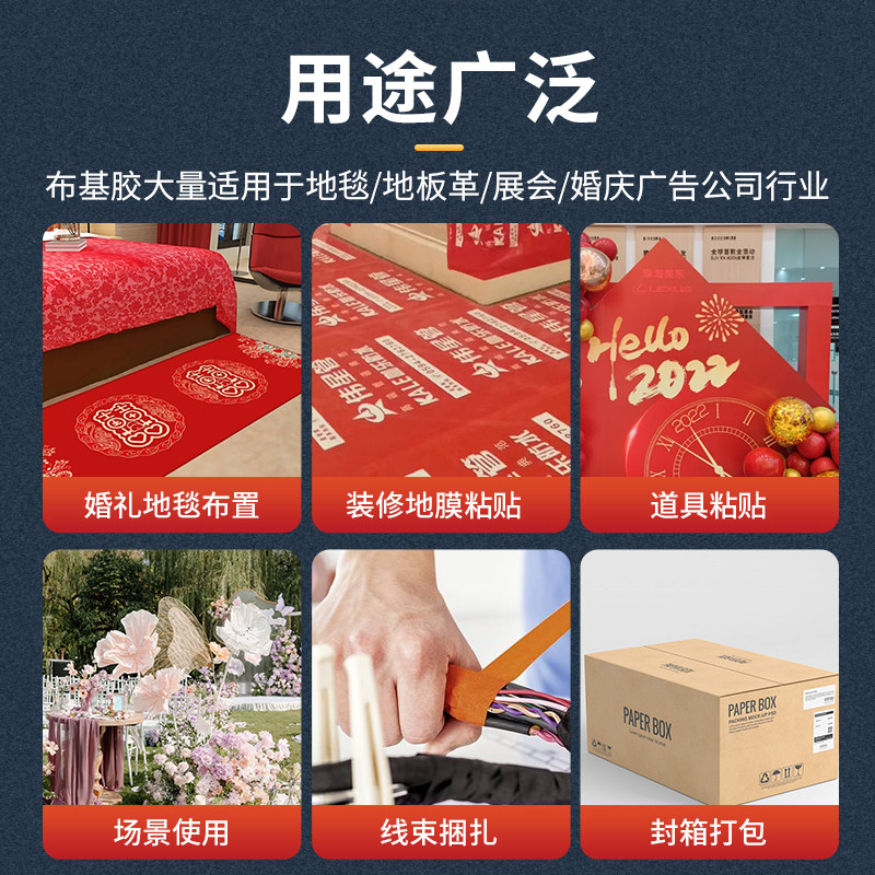 📚 强力单面布基胶带地毯会展婚前装修地膜防滑垫固定专用胶带高粘度耐磨红黄银色撕下不残留防水网格纤维布胶带