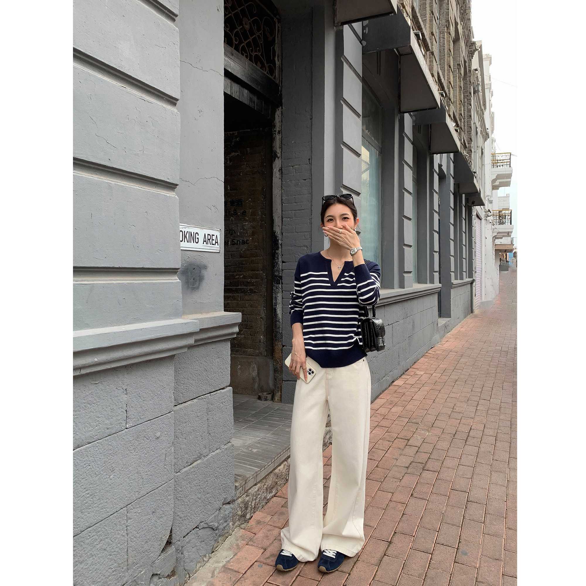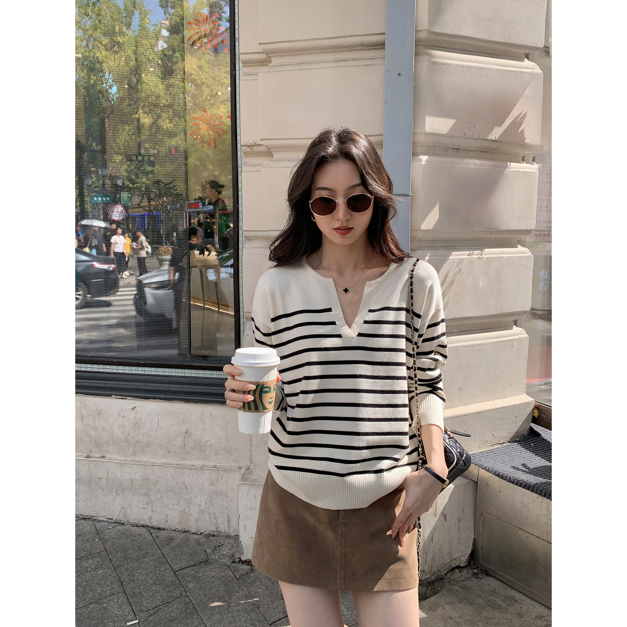 📚 MULVAN ROW老钱风 条纹v领毛衣女宽松套头针织衫休闲松弛感上衣