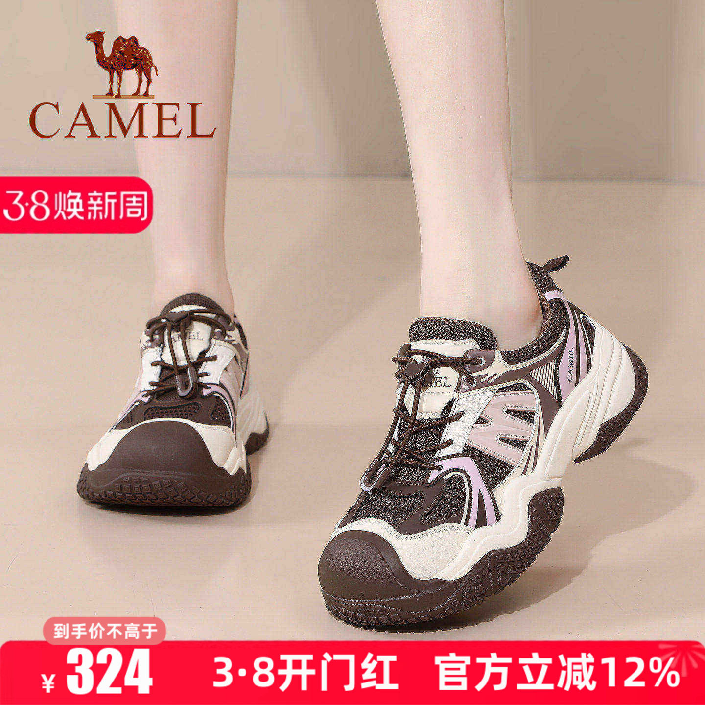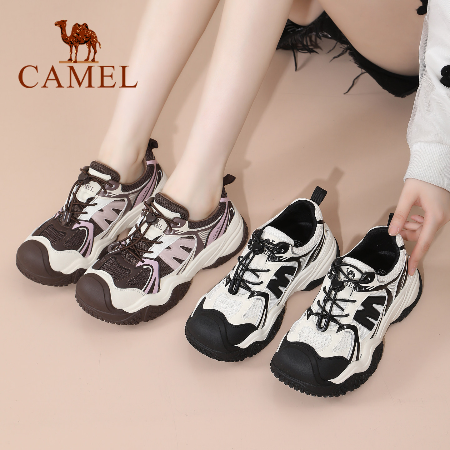 📚 Camel/骆驼女鞋26春季新款丑萌鞋户外登山鞋女厚底休闲运动鞋子