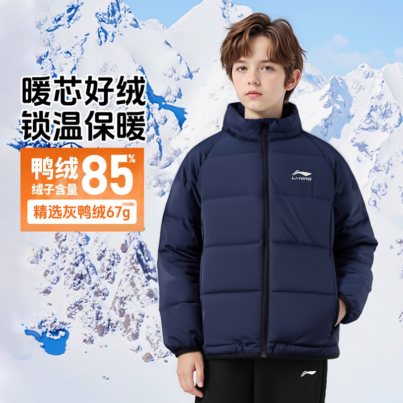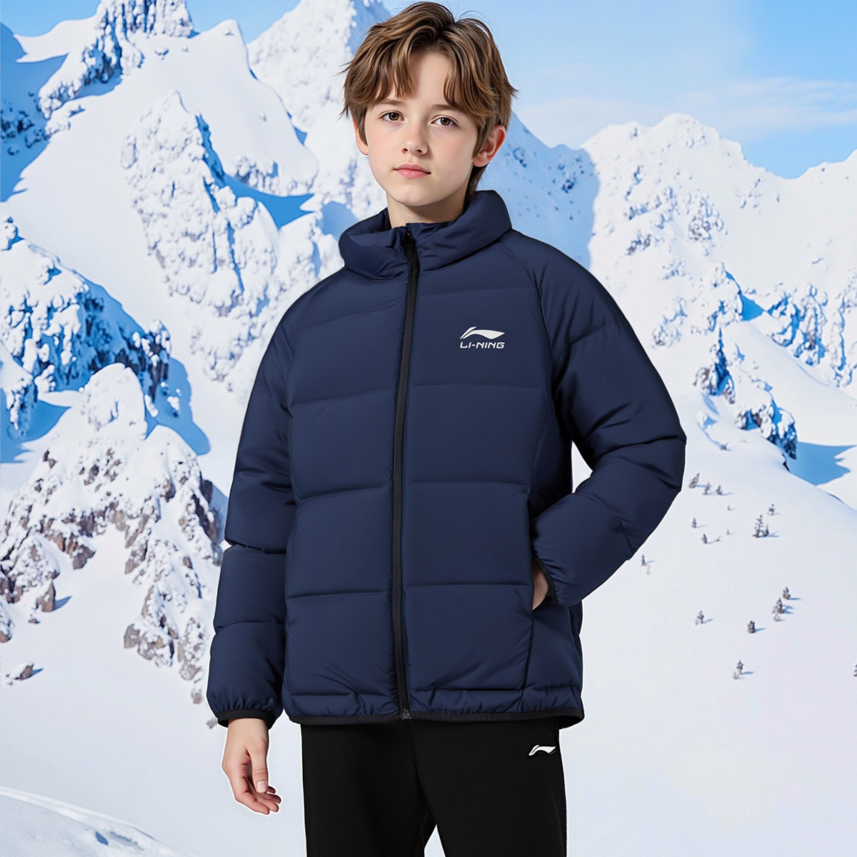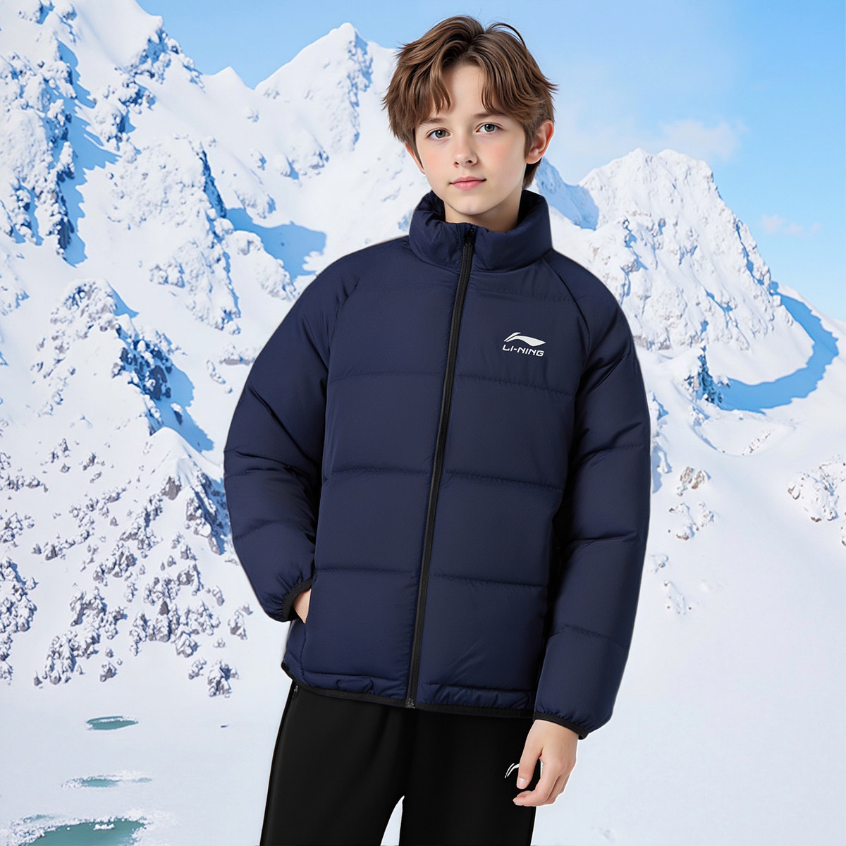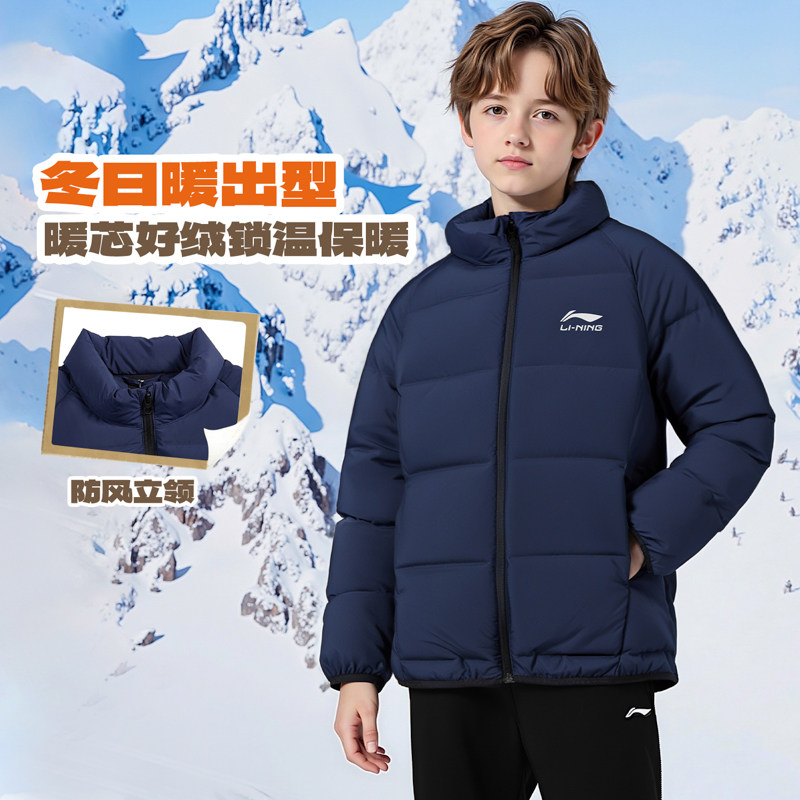 📚 李宁儿童短款羽绒服官方旗舰正品立领无帽长袖保暖鸭绒含量羽绒服
