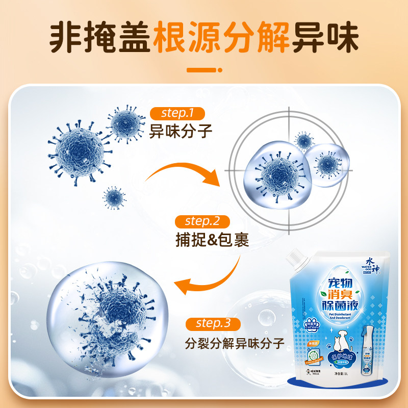 📚 旺旺水神微酸性次氯酸水宠物消臭除菌液补充装1Lx1无酒精无需稀释