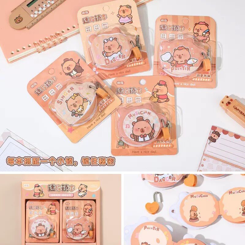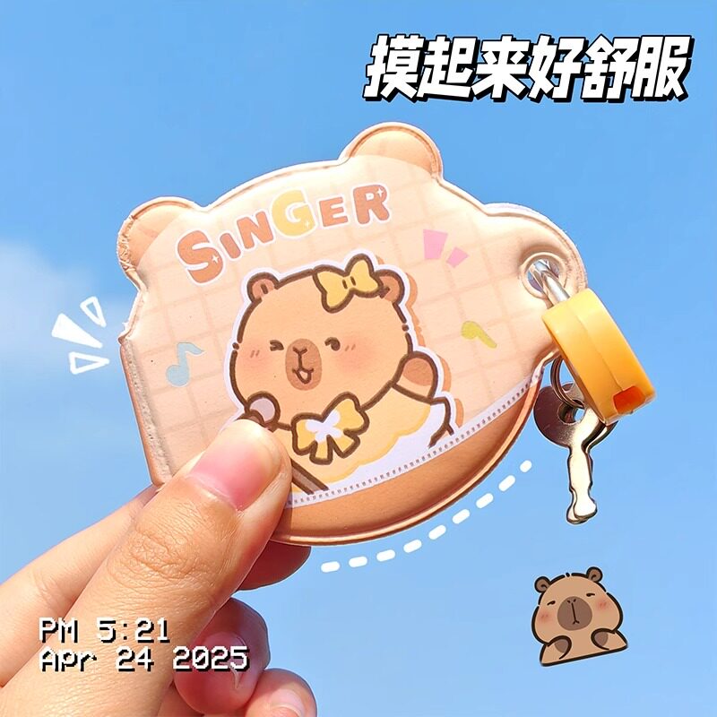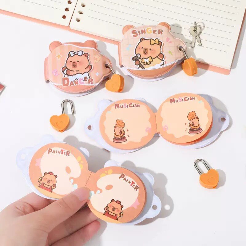 📚 创意卡皮巴拉挂锁小本子密码本迷你随身便携机关本带锁豆豆本日记本卡通带锁笔记本口袋本女孩小学生礼物