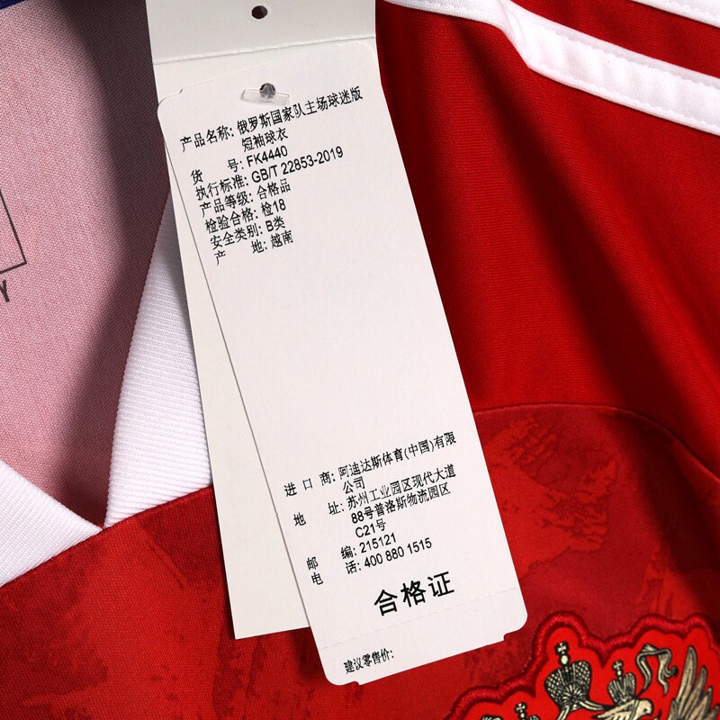 📚 Adidas 阿迪达斯 2020欧洲杯俄罗斯主场球迷版短袖足球衣 FK4440