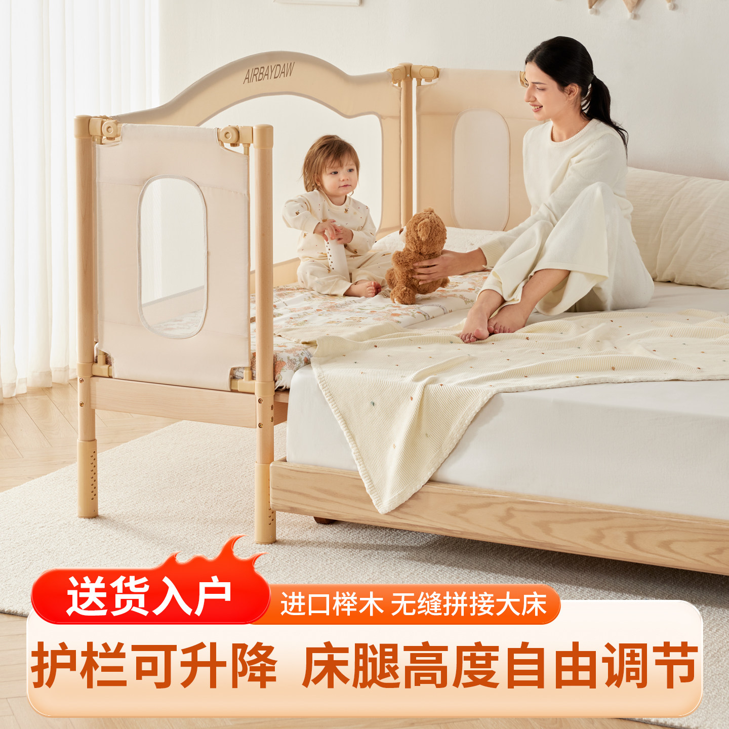 📚 拼接床婴儿实木定制护栏可升降榉木宝宝儿童床边大床加宽大人可睡