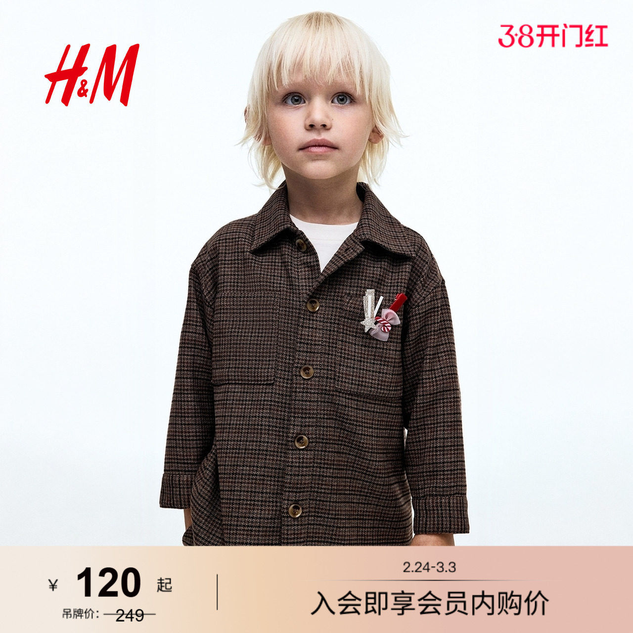 📚 HM儿童童装男童衬衫春季千鸟格大廓形外套衬衣1305341