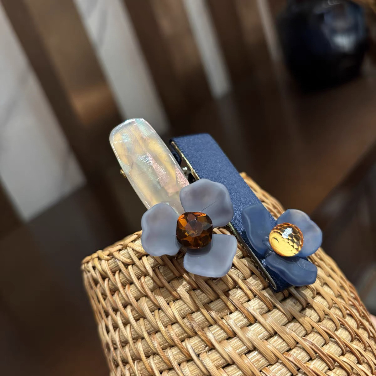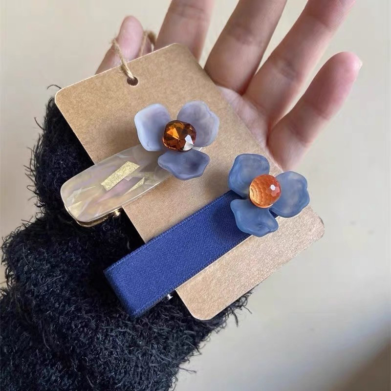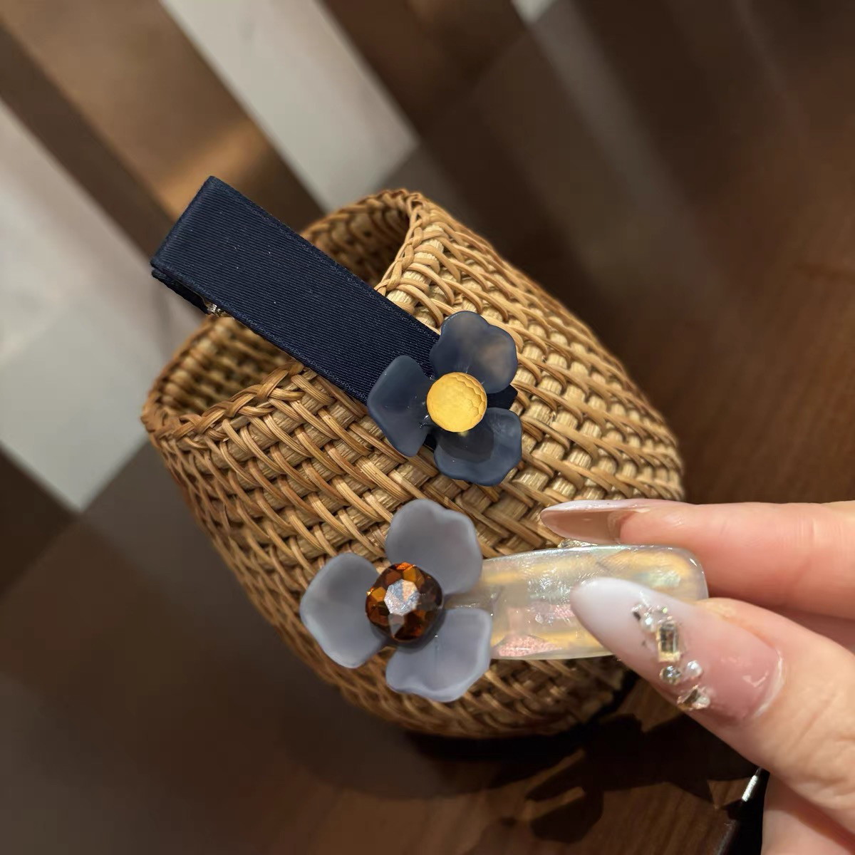 📚 雾霾蓝高级感磨砂复古三瓣花朵发夹质感百搭鸭嘴夹侧边刘海夹发卡