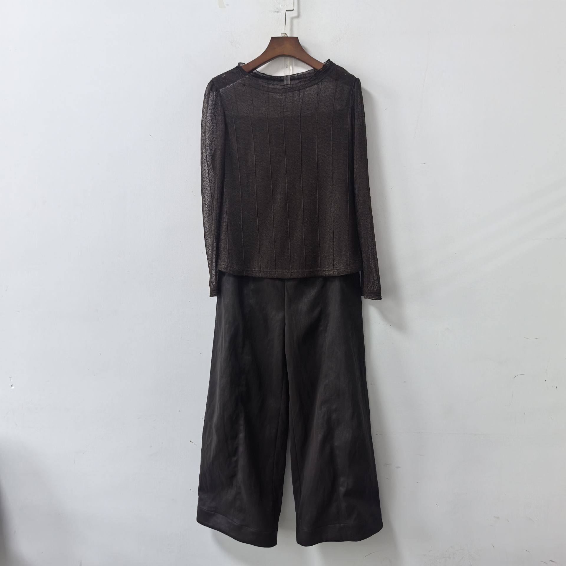 07¥ tG-#22>lD oTxvUEMNl2p¥ https://m.tb.cn/h.i3oR6bA G261T605春装2026国风软皮拼接马甲新中式阔腿裤三件套女新款套裤 --------------------- 【原售价】479元 【现售价】479元。