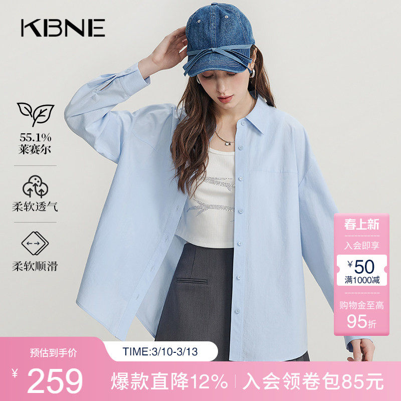 📚 KBNE淡蓝色莱赛尔衬衫气质衬衣2025秋季新款长袖独特别致上衣女装