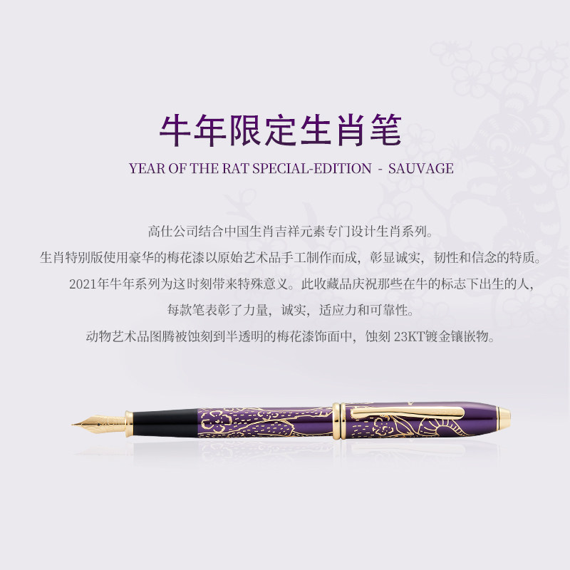 📚 美国CROSS高仕钢笔涛声系列宝珠笔 牛年生肖限定紫色18K尖签字笔