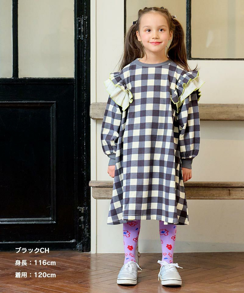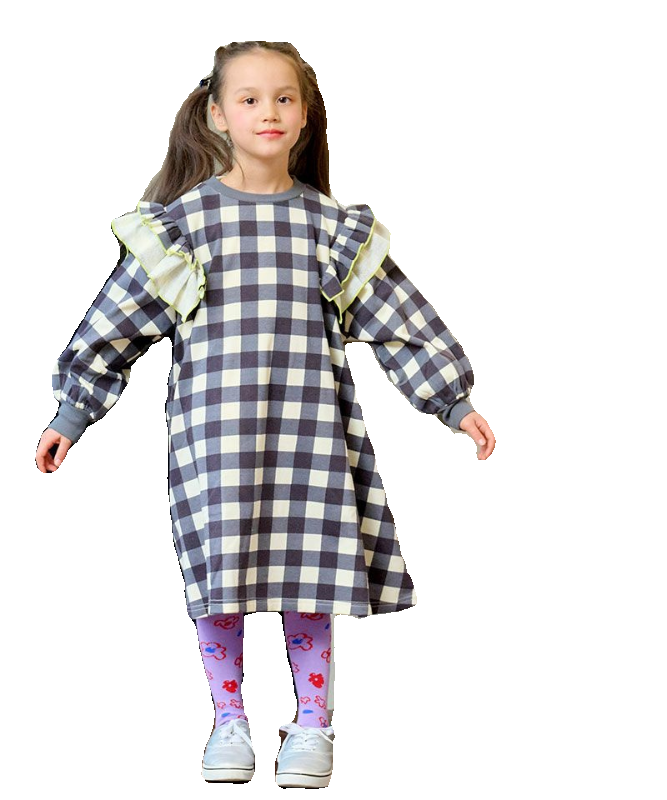📚 原单Markeys女童毛圈卫衣卫衣裙宽松休闲款大花边袖格子纯棉上衣