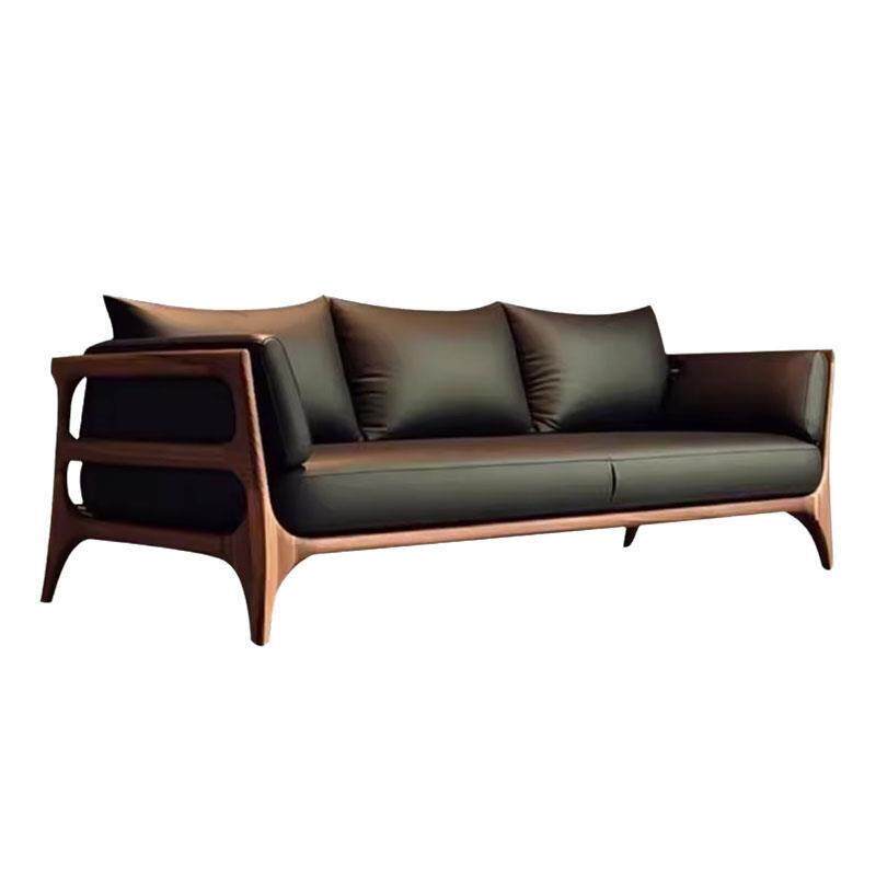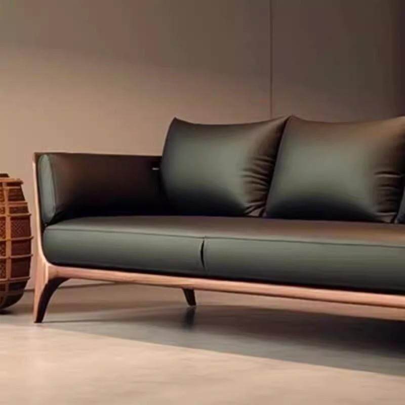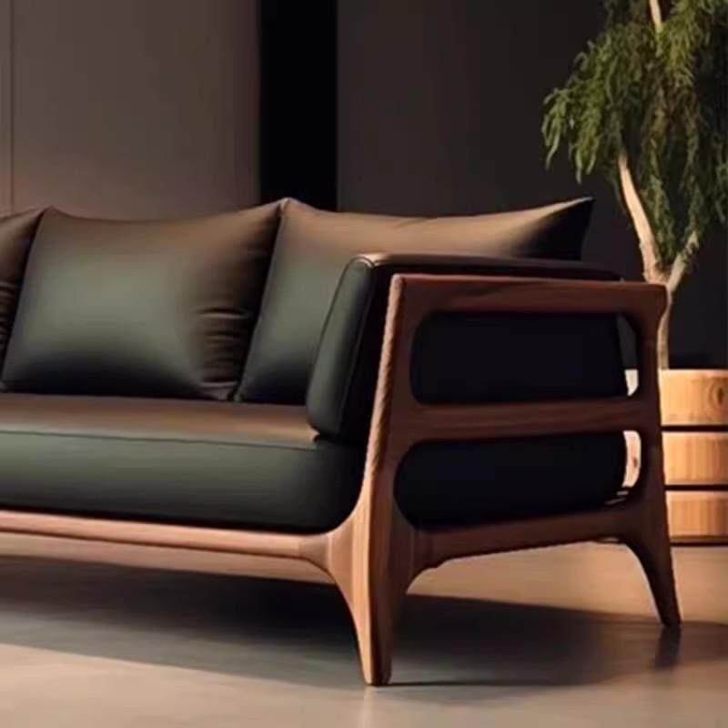 📚 新中式北美黑胡桃木真皮沙发客厅现代简约轻奢办公接待沙发小户型