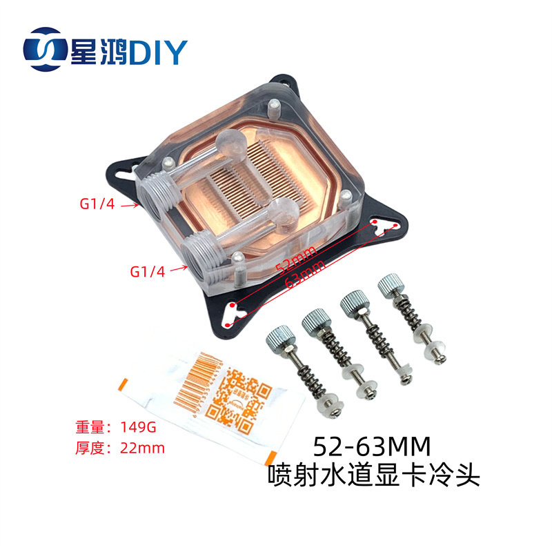 📚 喷射水道款 透明GPU核心显卡水冷头 孔距52-63 电脑水冷头 紫铜底