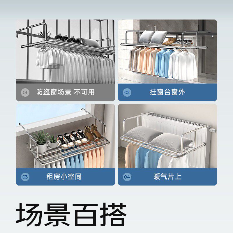 📚 多功能晾衣架可折叠阳台晾衣神器防盗网窗户护栏杆晾衣架挂室外家