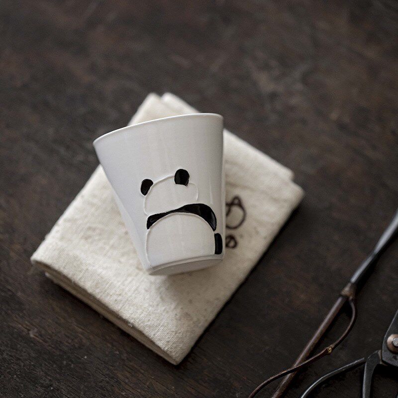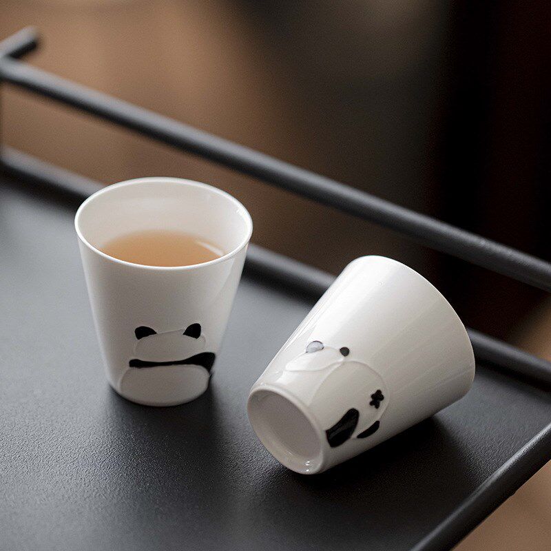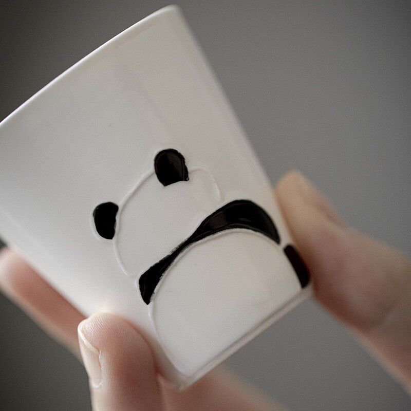 📚 手绘堆雕熊猫品茗杯功夫茶具家用陶瓷闻香杯创意喝茶杯