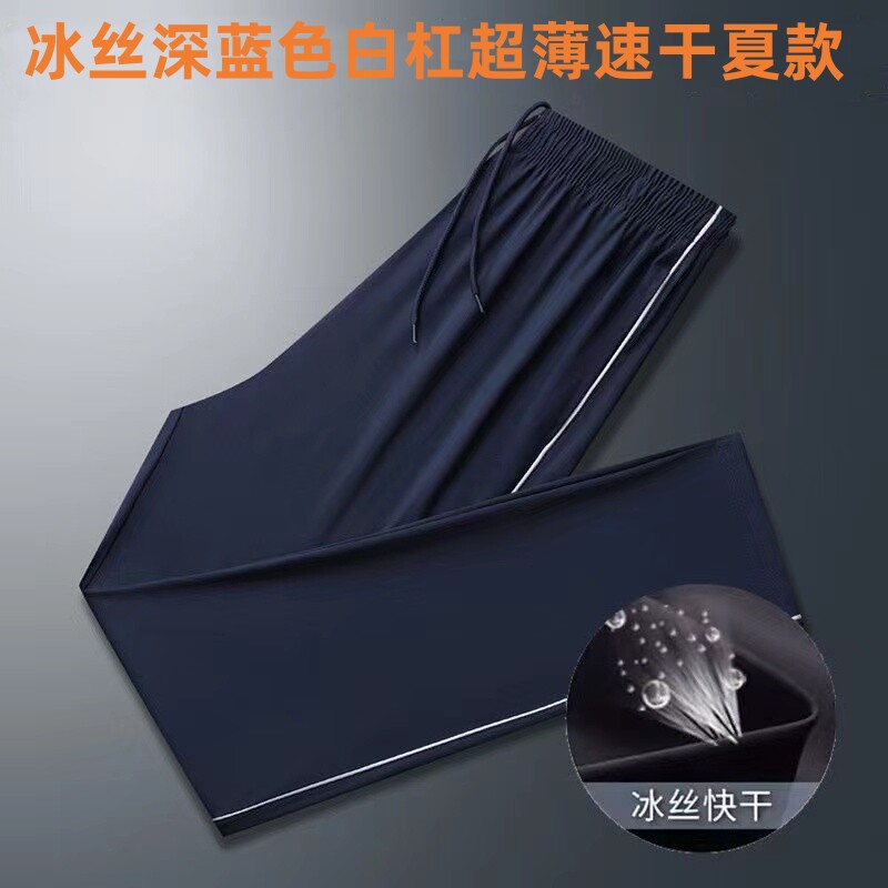 📚 春夏季冰丝薄款校服裤子藏青色初高中小学生一条杠深蓝色反光校裤