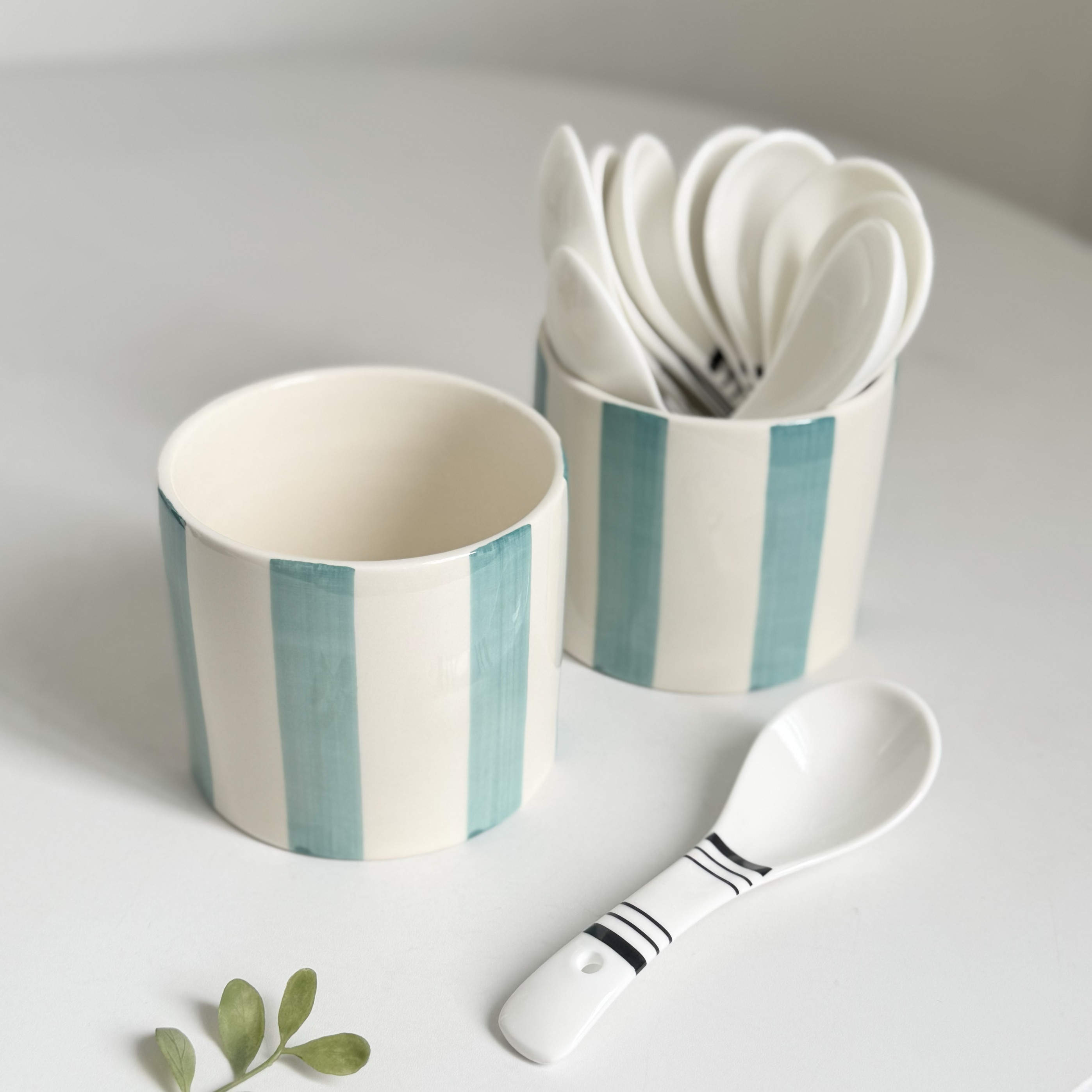 📚 小清新厨房陶瓷调羹勺子收纳罐家用汤勺水果叉化妆刷收纳罐子