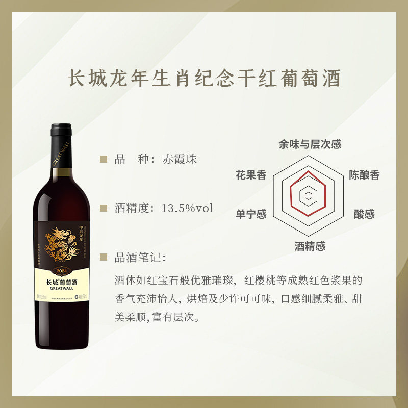 📚 中粮长城甲辰龙年生肖纪念赤霞珠干红葡萄酒红酒6瓶正品