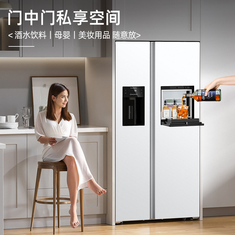 📚 【政府补贴15%】达米尼573L白色玻璃双开门全自动制冰冰箱一体机