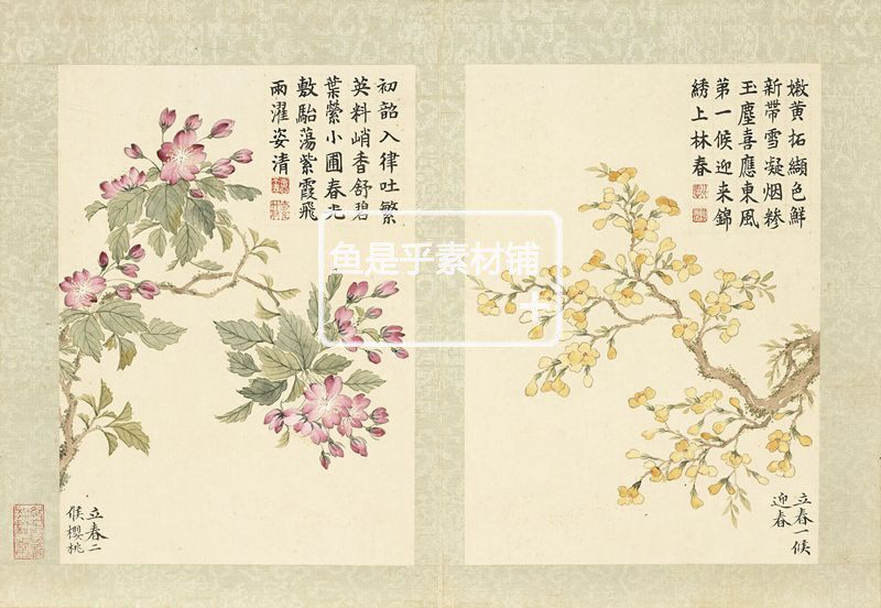 📚 二十四番花信风图片画册董诰绘传统节气花卉工笔国画高清电子素材