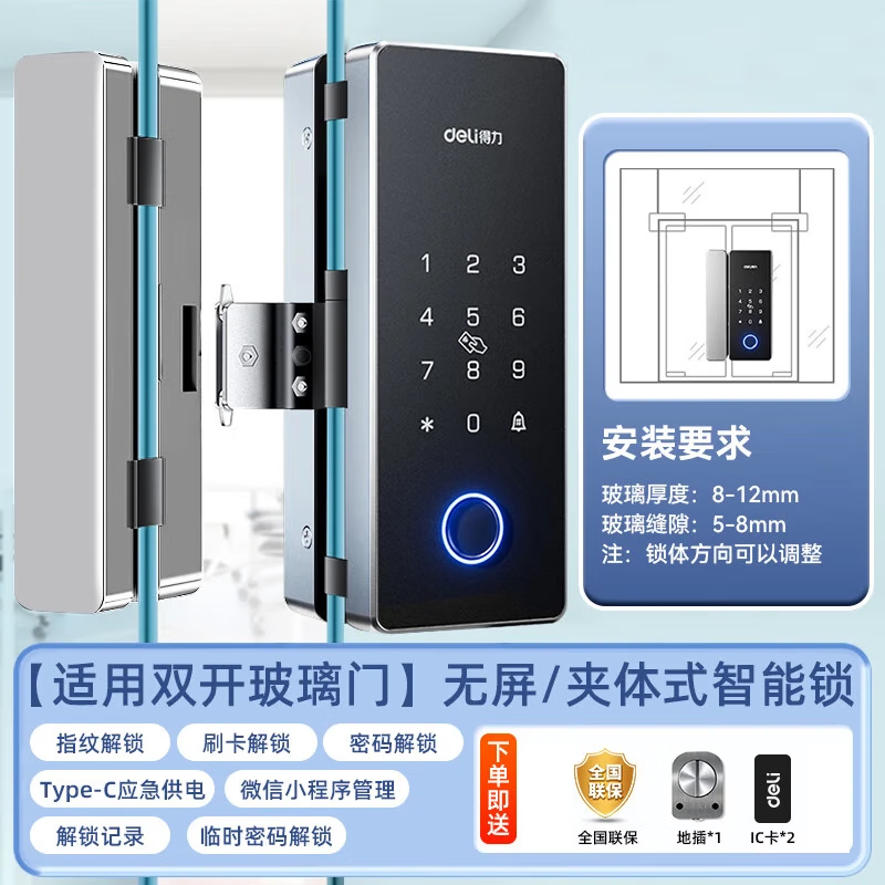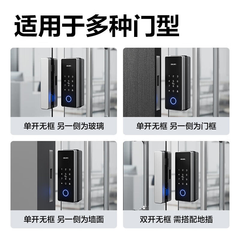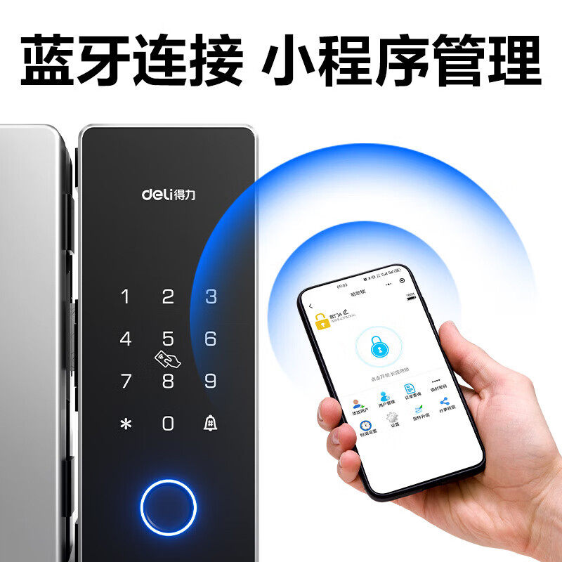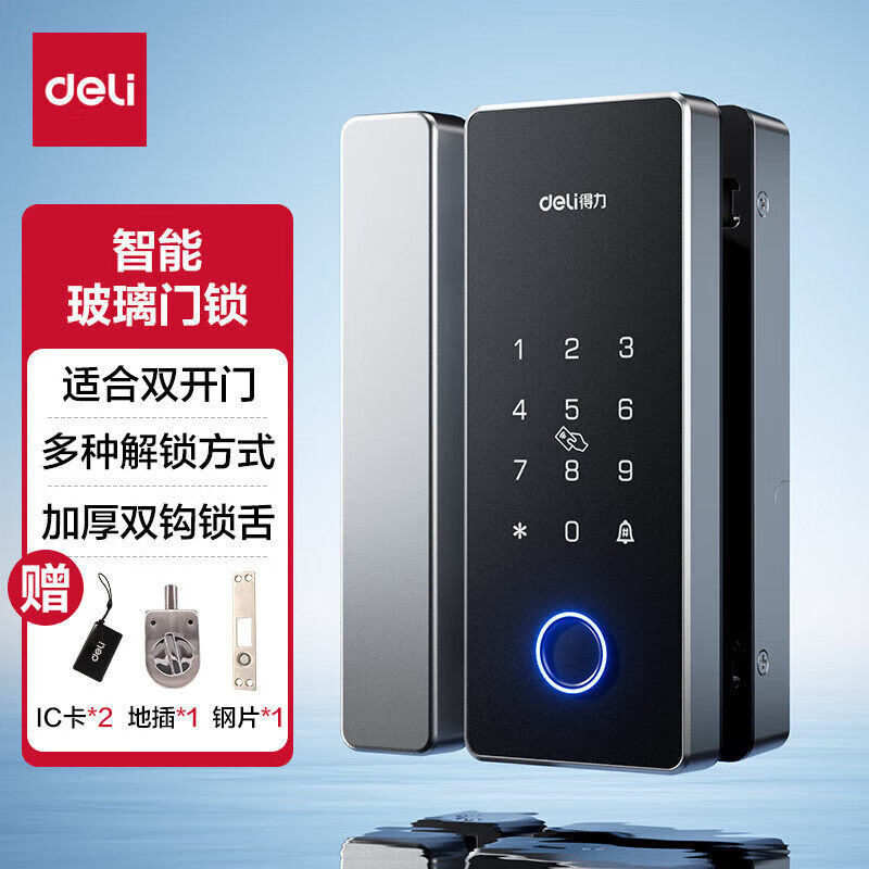 📚 得力(deli)办公室智能玻璃门锁 玻璃门密码锁 指纹密码锁门禁机 指纹密码IC卡手机解锁开门蓝牙小程序管理
