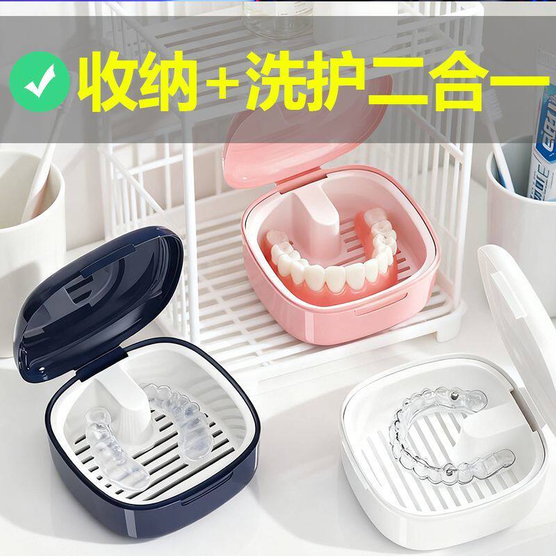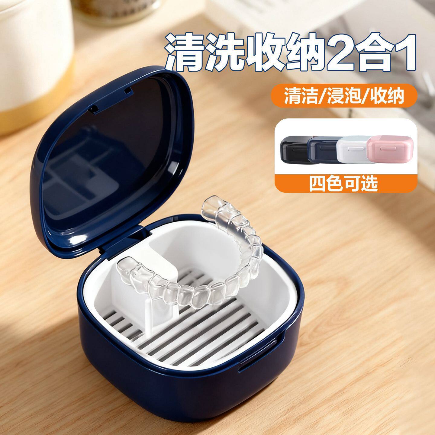 📚 日本牙套盒子便携带浸泡清洗假牙牙齿矫正器隐形牙套保持器收纳盒