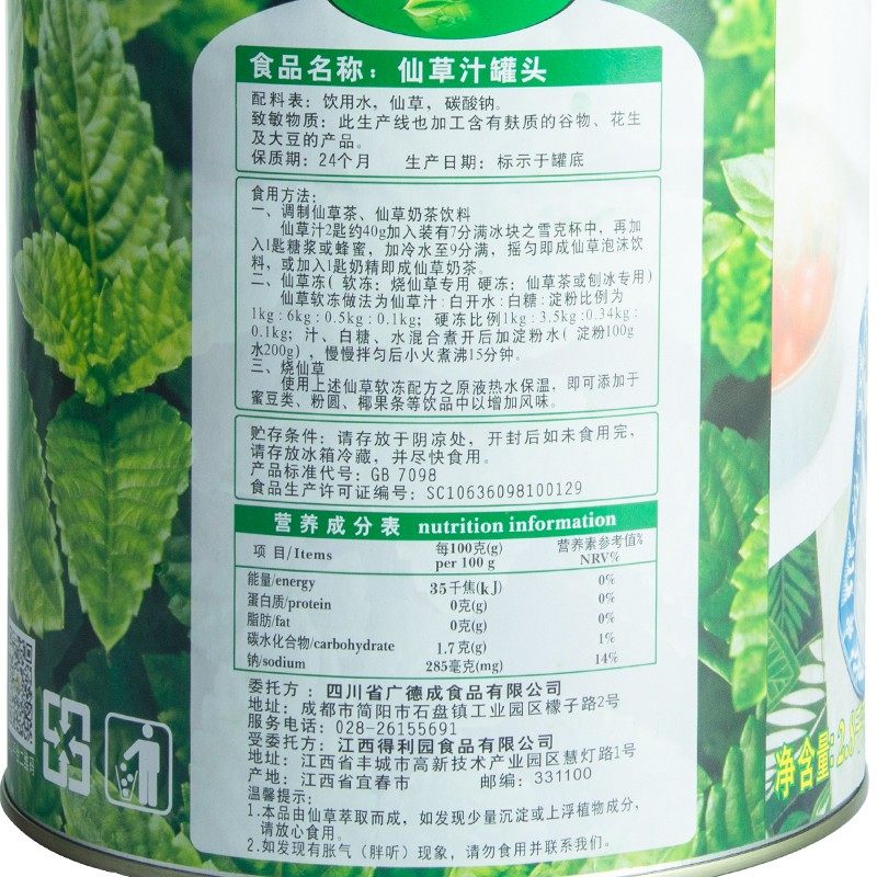 📚 广村烧仙草汁台湾风味冻罐头2.8kg 黑凉粉龟苓膏奶茶店甜品原料