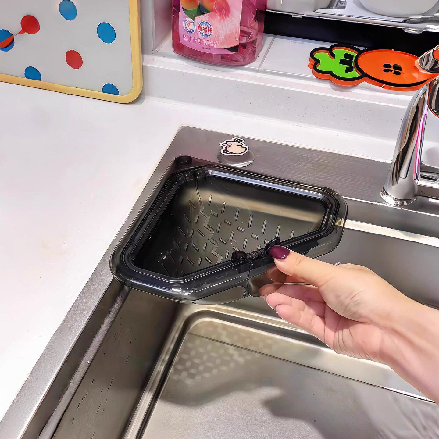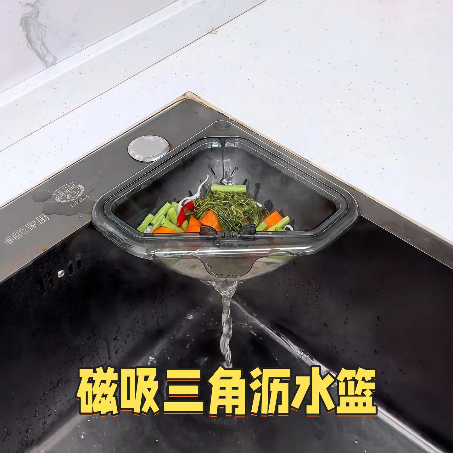 📚 磁吸三角沥水篮厨房食物残渣剩菜过滤网厨余垃圾水槽转角置物架子