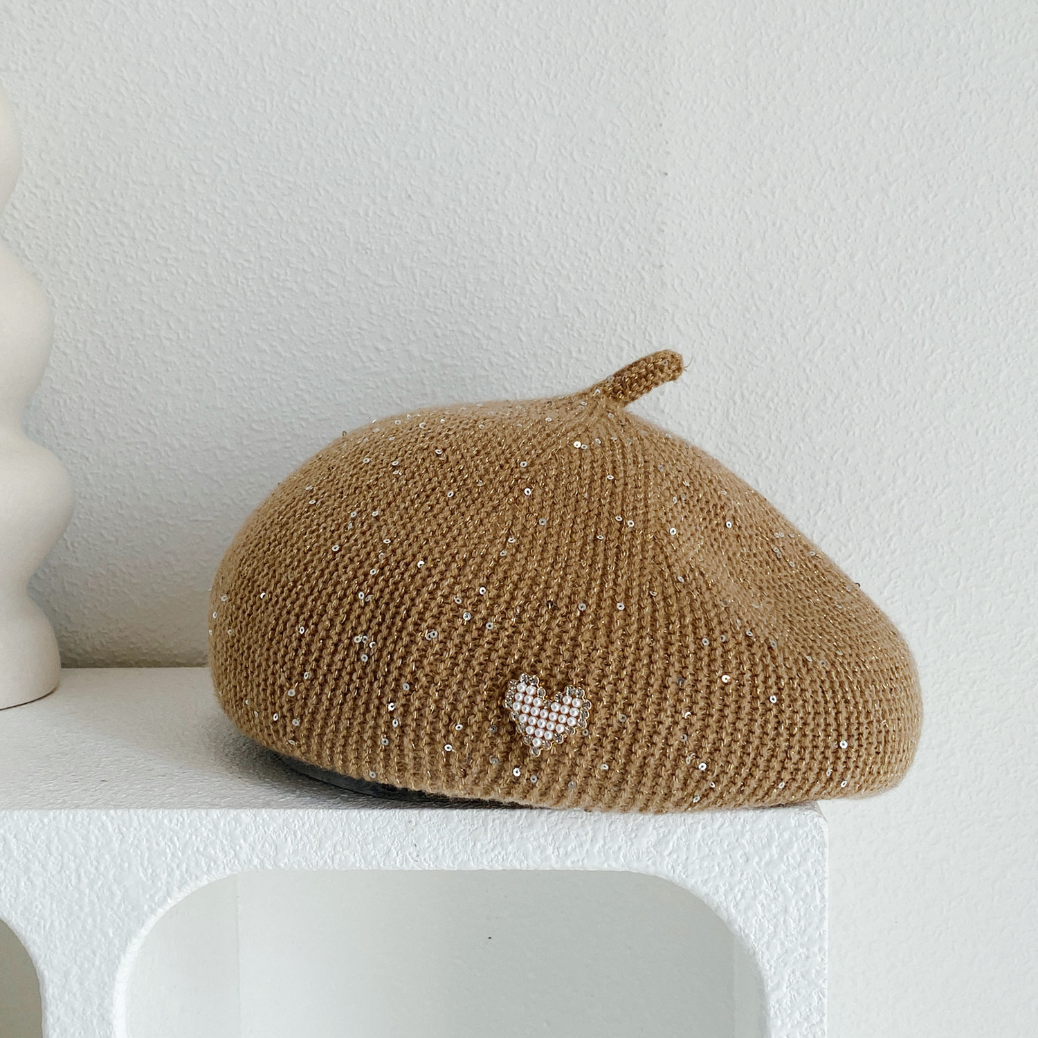 📚 日系复古珍珠水钻爱心扣贝雷帽子女冬季羊毛混纺显脸小气质画家帽